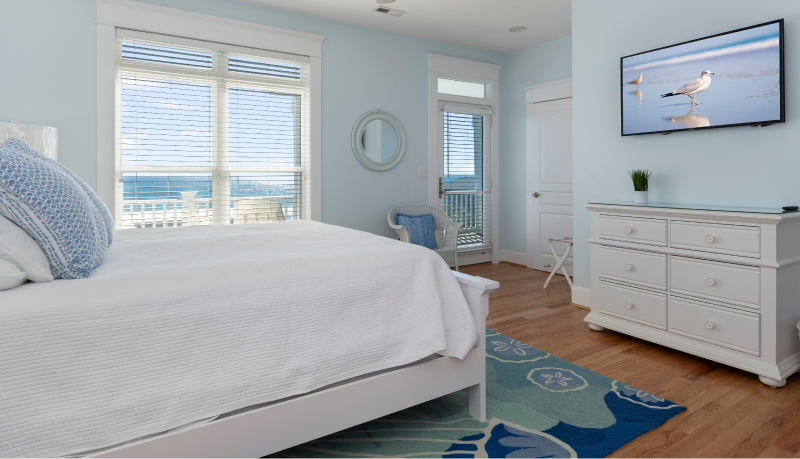 Sea It All boasts some major space. This 3,500 sq. ft. property was made for traveling with a large group, be it a family vacation, wedding celebration, or company retreat. Four of the six bedrooms are roomy master suites that each have private bathrooms and deck access. Each bedroom also includes a wall-mounted flat screen TV and there is high-speed Internet access throughout the property.